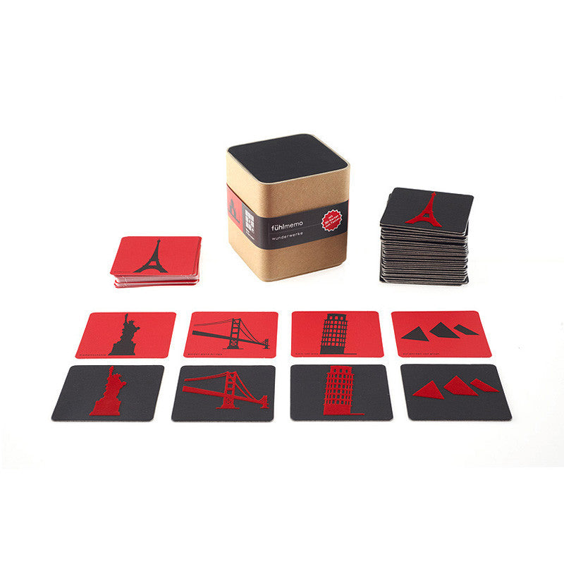 FLÜGEL ODER FLOSSE? EIFFELTURM ODER BRANDENBURGER TOR? MIT DEM AUGE ERKENNEN WIR DIE WUNDERBARE VIELFALT VON TIERWELT UND ARCHITEKTUR SOFORT. WIR WISSEN, WIE SIE AUSSEHEN UND KÖNNEN SIE BEIM NAMEN NENNEN. ABER KÖNNEN WIR SIE AUCH ERFÜHLEN? WIE GUT FUNKTIONIERT UNSER TASTSINN, WENN UNSERE AUGEN NICHT MITHELFEN DÜRFEN? DIESER SPANNENDEN UND ERKENNTNISREICHEN FRAGE HELFEN DIE FÜHLMEMOS "TIERWELT" UND "WUNDERWERKE" NACHZUSPÜREN. DIE JE 32 FÜHL- UND LEGEKÄRTCHEN (7 X 7 CM) SIND MIT STREICHELZARTEN MOTIVEN BEFLOCKT. SIE ZU ERTASTEN UND ZUZUORDNEN IST SINNLICHE HERAUSFORDERUNG UND WUNDERBARES TRAINING FÜR DAS EIGENE FINGERSPITZENGEFÜHL IN EINEM.