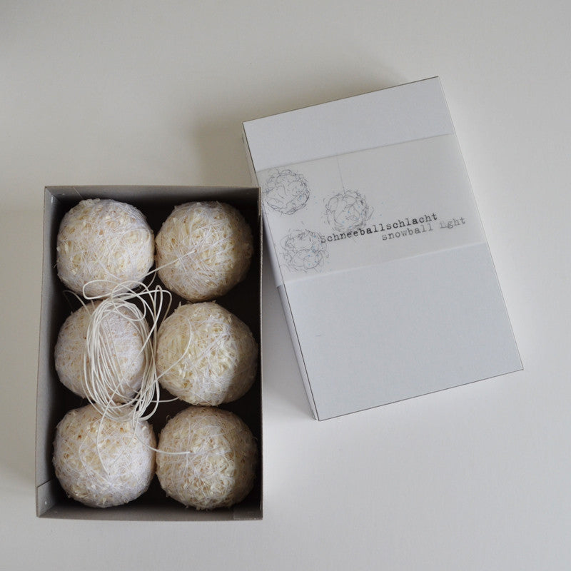 Auf geht's in die Schneeballschlacht! Zum Werfen sind die Schneebälle ausPapierwolle von Raumgestalt allerdings viel zu schade. Stattdessen zaubern sie einen Hauch von Winterwunderland in die vorweihnachtliche Wohnung. An Girlanden, schönen Ästen oder zu Heiligabend am Tannenbaum aufgehängt, sind sie die ideale Dekoration für jeden, dem schlichte Schönheit bunt genug ist. Lieferumfang: 6 Schneebälle aus Papierwolle an langen weißen Fäden für die weihnachtliche Dekoration in einer hübschen Aufbewahrungsbox.
