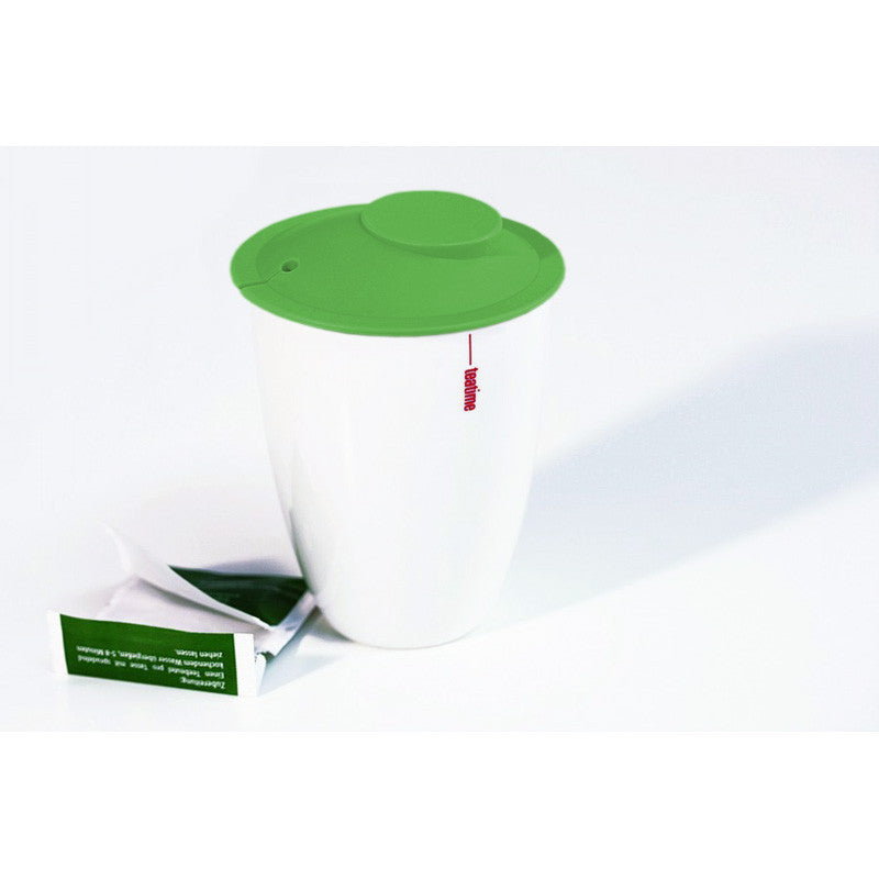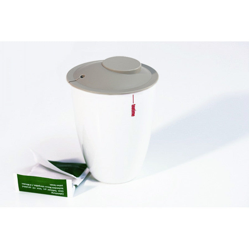 Dieser Becher wird das Herz eines jeden Teetrinkers zum Schmelzen bringen, ohne dass er sich daran die Finger verbrennen muss. Teatime ist ein doppelwandiger Porzellanbecher (230 ml), der den Tee heißt hält, ohne Hitze nach außen abzugeben. Der raffinierte Deckel schützt die Wärme zusätzlich und hält in einem kleinen Schlitz den Teebeutel fest am Faden. Ist der Tee fertig gezogen, den Deckel abheben, den Beutel am Faden nach oben ziehen und auf der umgestülpten Innenseite des Deckels liegen lassen.