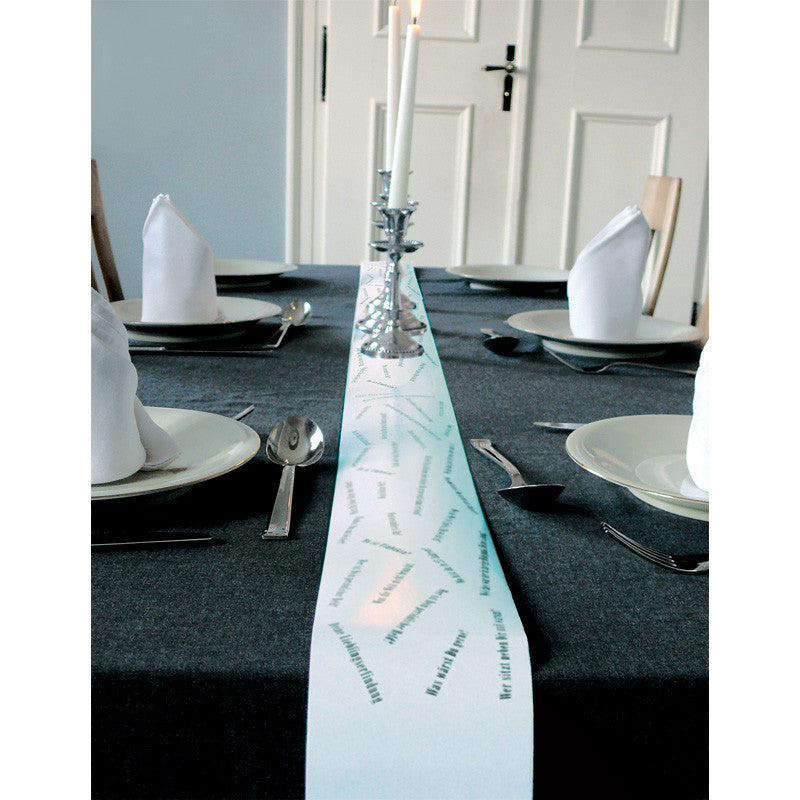 Maße: Tischläufer 10 x 200 cm; Box 12 x 7 x 7 cm.