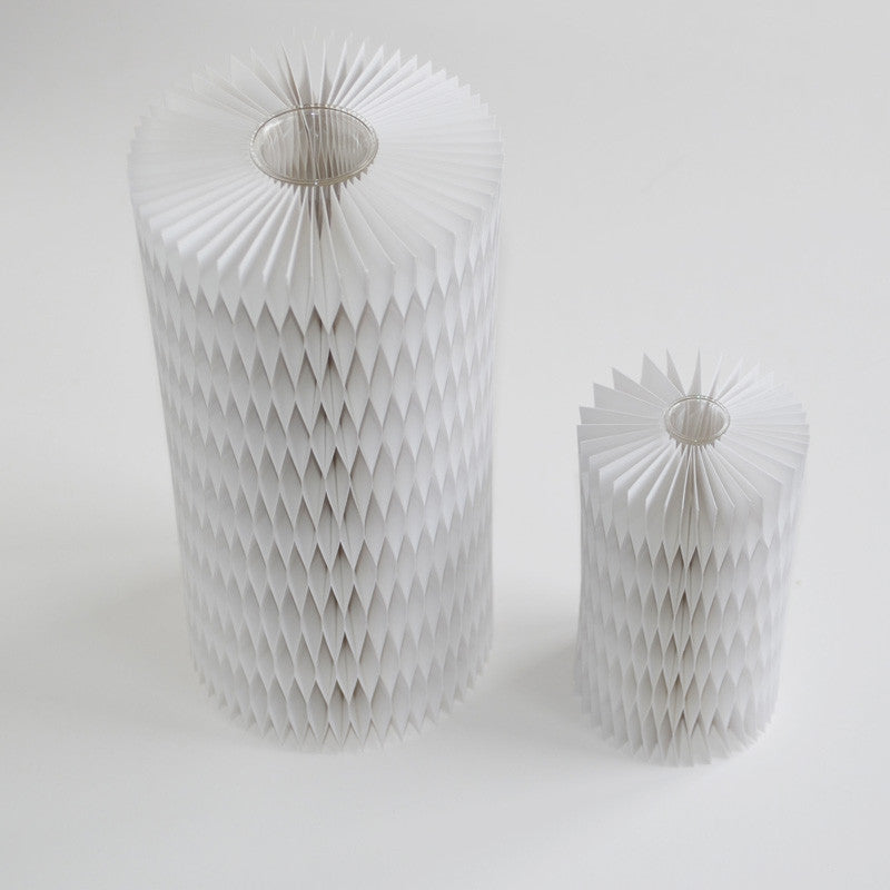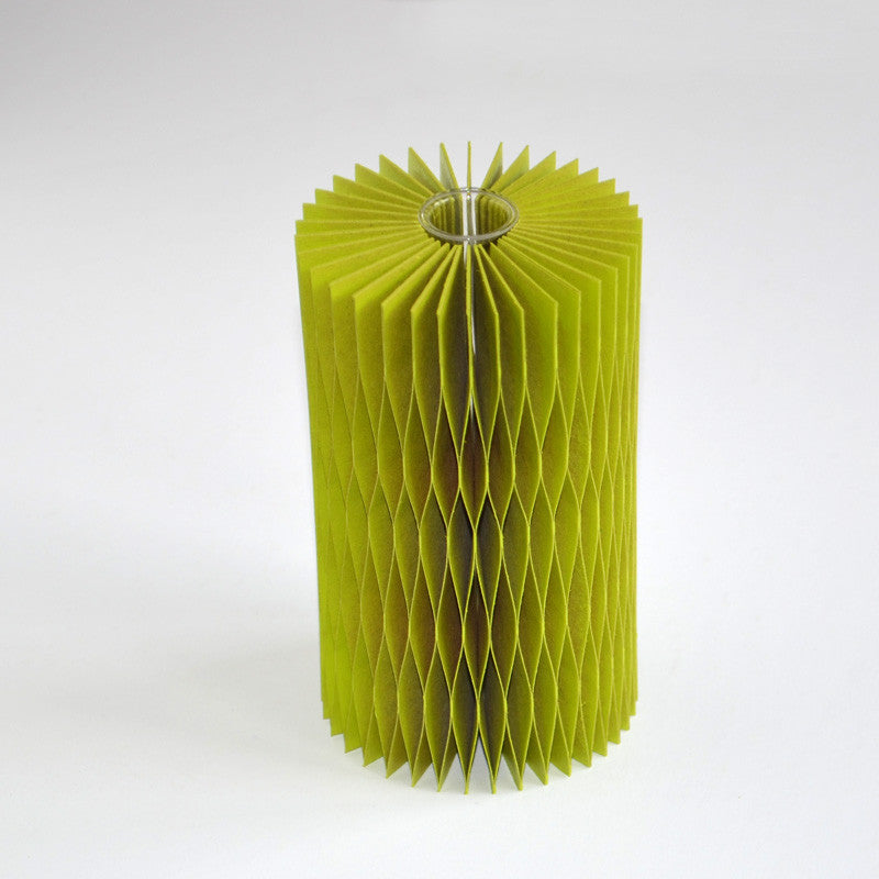 Favino von onlydesign ist eine handgefertigte Vase aus Wabenkarton. Je nach Lichteinfall und Blickwinkel lassen die Waben ein wundervoll changierendes Schattenspiel entstehen. In der Mitte befindet sich ein Reagenzglas-Einsatz. Die Vase wird einzeln aufgestellt, mit einer einzigen farblich passenden Blume zum interessanten Designobjekt. Wunderbar lassen sich auch Favino-Vasen in verschieden Größen und Farben zu einer warmen, modernen Innendekoration verbinden, die garantiert Blicke auf sich ziehen wird.