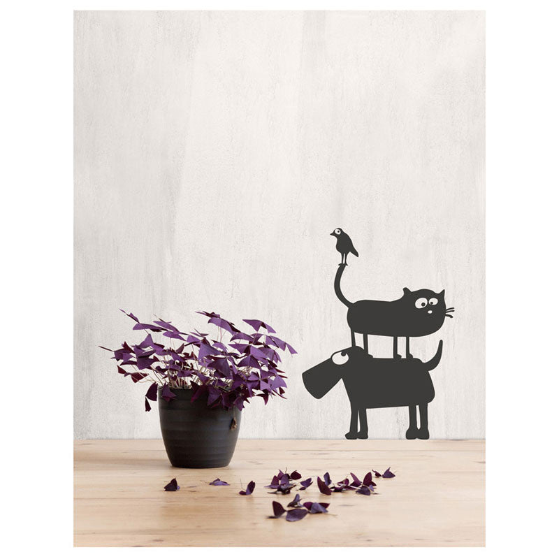 Es war einmal eine Katz' namens Friedegunde, die sich aufmachte die Welt zu erkunden. Als sie alles gesehen und erfahren hatte, kam sie zu ihrer Besitzerin zurück - mit schiefem Hals. Was ihr unterwegs begegnet ist, darüber lässt sich nur spekulieren. Die Dresdner Designerinnen Ines Heidner und Juliane Heidrich spekulierten und phantasierten wild über Friedegundes Abenteuer. Aus ihren Ideen entwickelten sie eine Reihe liebevoller Momentaufnahmen, in denen Friedegunde die Katz' möglichen Weggefährten wie dem Herrn Just und Alfons oder Eduard von Bollersbach über den Weg läuft. Die Wandbilder mit Szenen gegenseitiger Neckereien sind uns direkt ins Herz geschossen. Matte PVC-Folie mit Transferfolie in dunkelgrau. Haftet auf glatten Oberflächen, bei Raufaser drückt sich die Tapetenstruktur durch.
